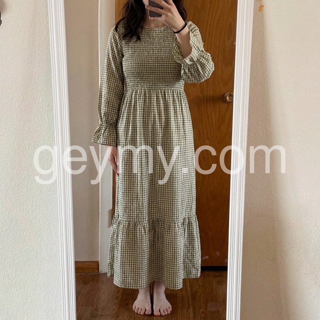 Effortlessly chic and versatile, our Green Check Round Neck Maxi Dress is a must-have for your wardrobe. The classic round neck design and green check print add a touch of sophistication, while the flowy maxi length ensures comfort and style. Perfect for any occasion, this dress is sure to turn heads.