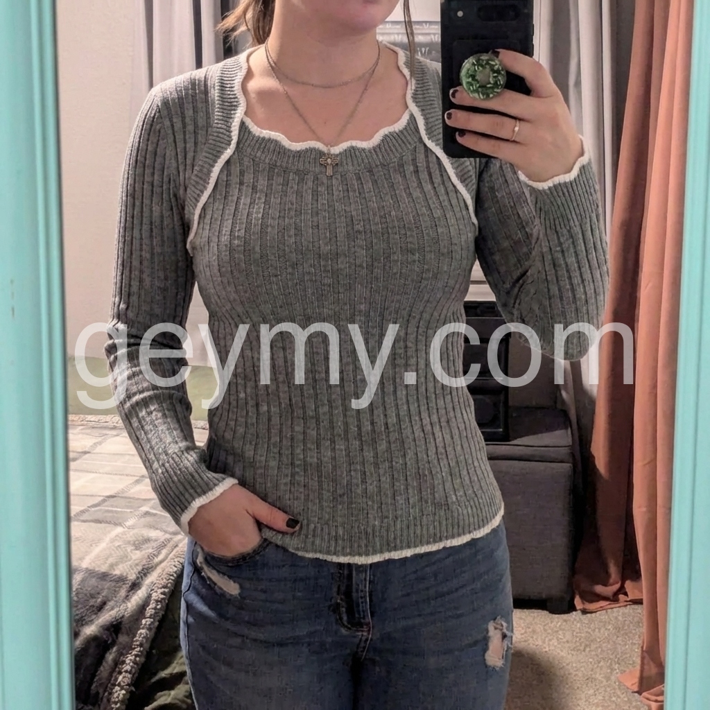 Stay cozy and stylish with our Grey Square Neck Long Sleeve Sweater. Made with high quality materials, this classic sweater offers a snug fit and an elegant square neckline. Enjoy the warmth and comfort of long sleeves, while looking effortlessly chic. Perfect for any occasion, this sweater is a must-have for your wardrobe.