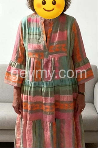 Fresh Print 3/4 Sleeve Mini Dress