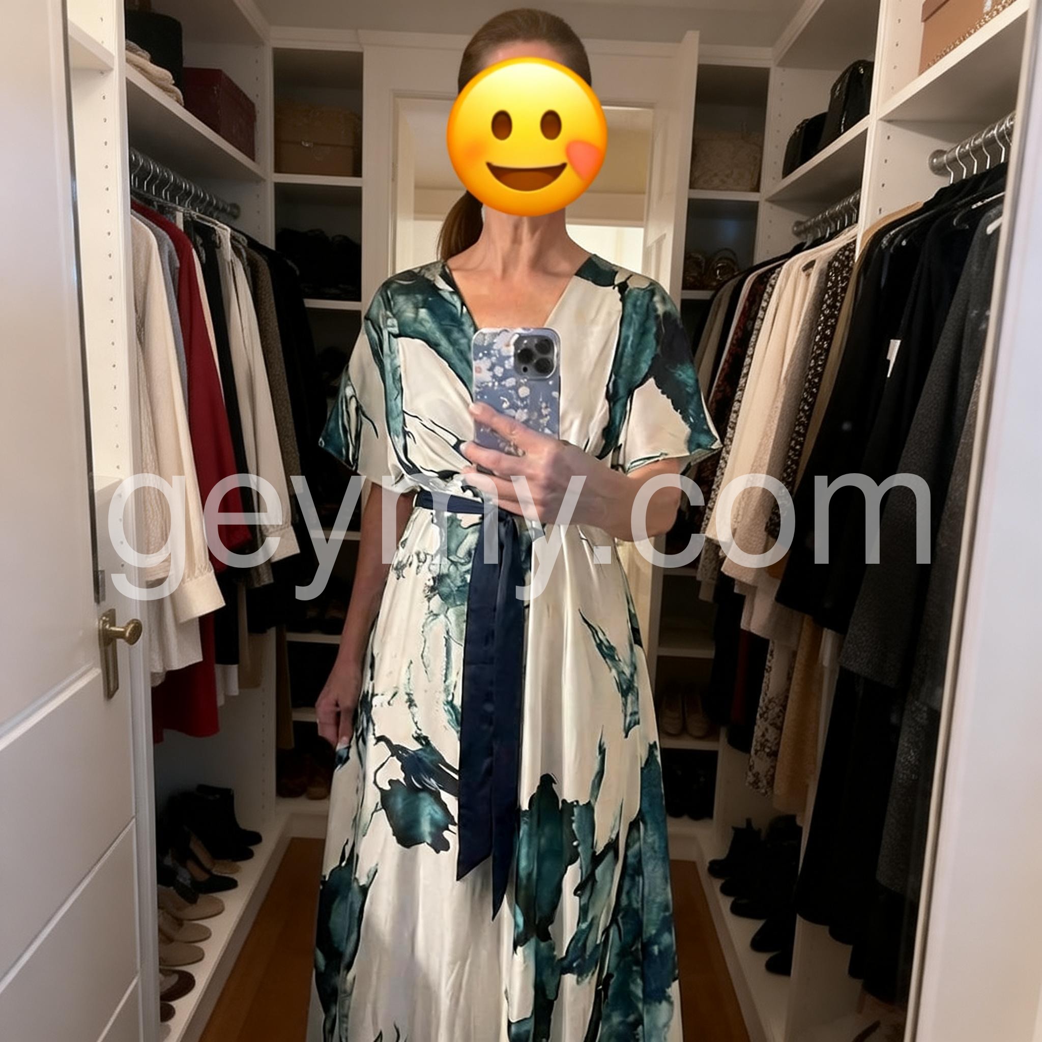 This trendy V-neck short sleeve maxi dress is the perfect addition to your wardrobe. Made with a flattering v-neck design and short sleeves, this dress is both stylish and comfortable. The maxi length adds sophistication, making it a versatile option for any occasion. Upgrade your look with this must-have piece.