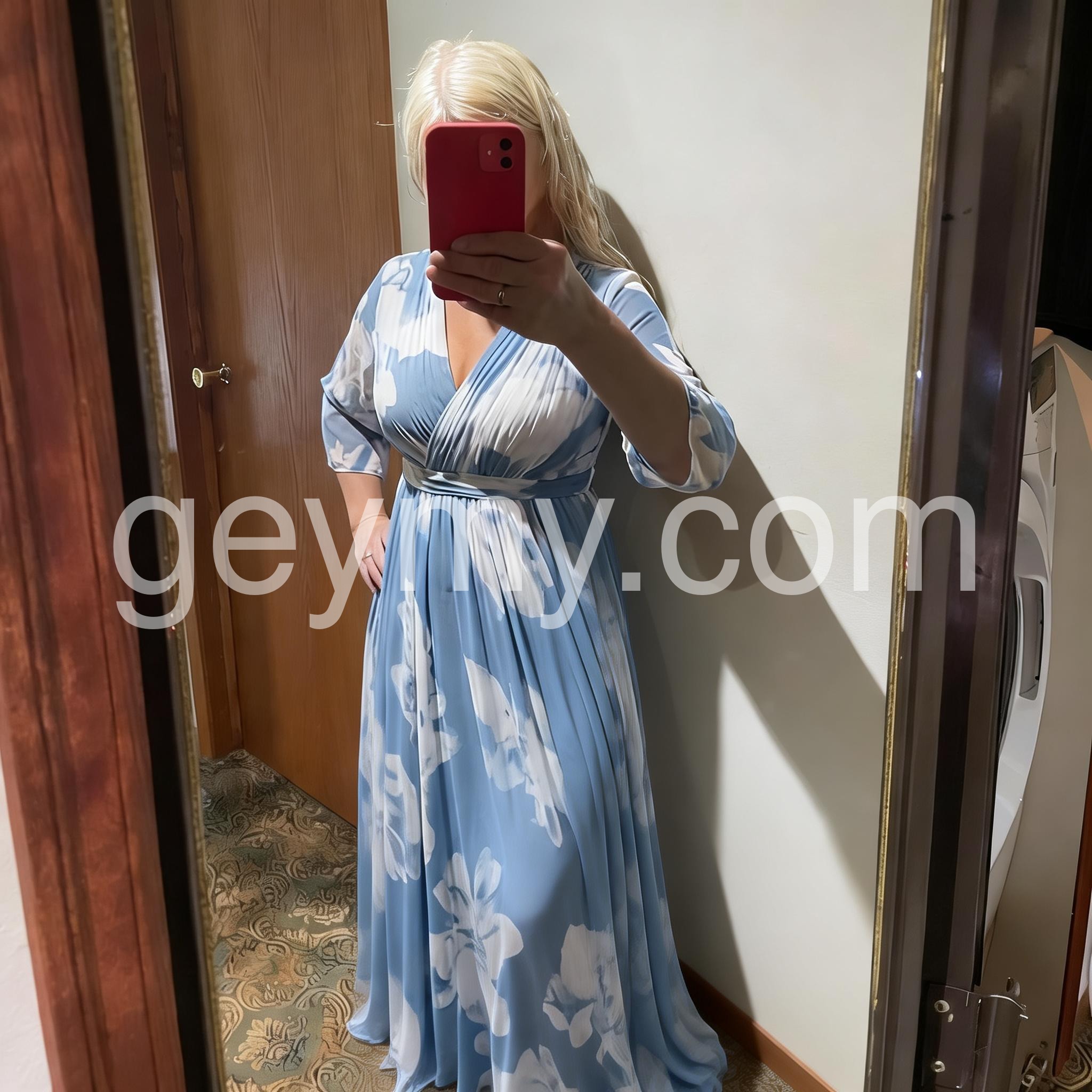 The Youthful Blue V-Neck Maxi Dress is a versatile and stylish addition to any wardrobe. Made from high-quality materials, this dress offers both comfort and durability. Its flattering v-neck design and flowing maxi length make it perfect for any occasion. Look and feel your best with this must-have dress.
