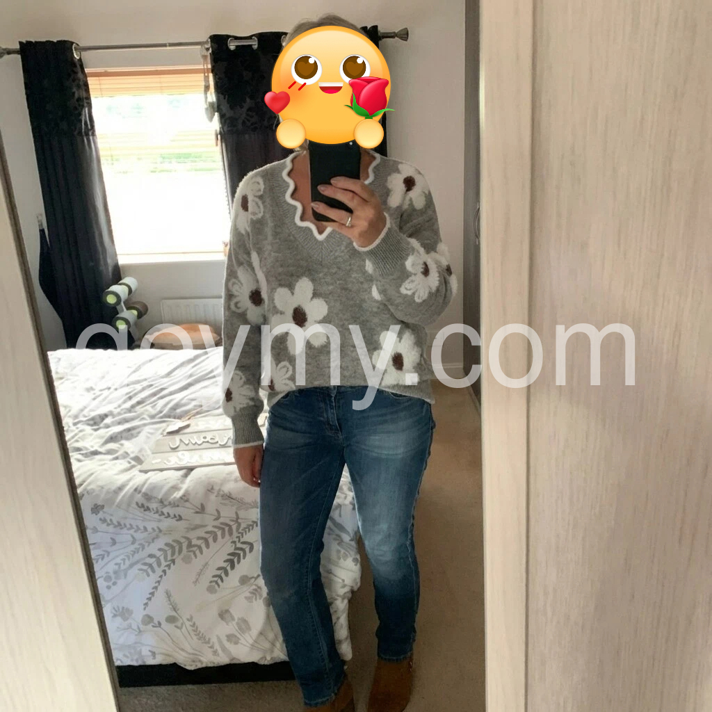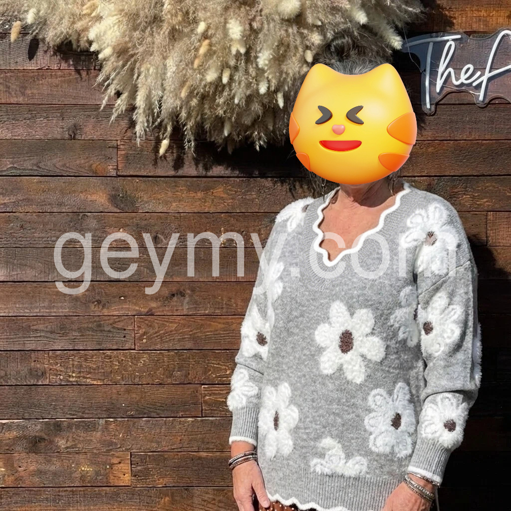 This Grey V-Neck Floral Print Sweater will keep you fashionably warm all season. With its classic v-neck design and floral print, this sweater has the perfect combination of style and comfort. Perfect for any occasion, this sweater is sure to keep you looking stylish.