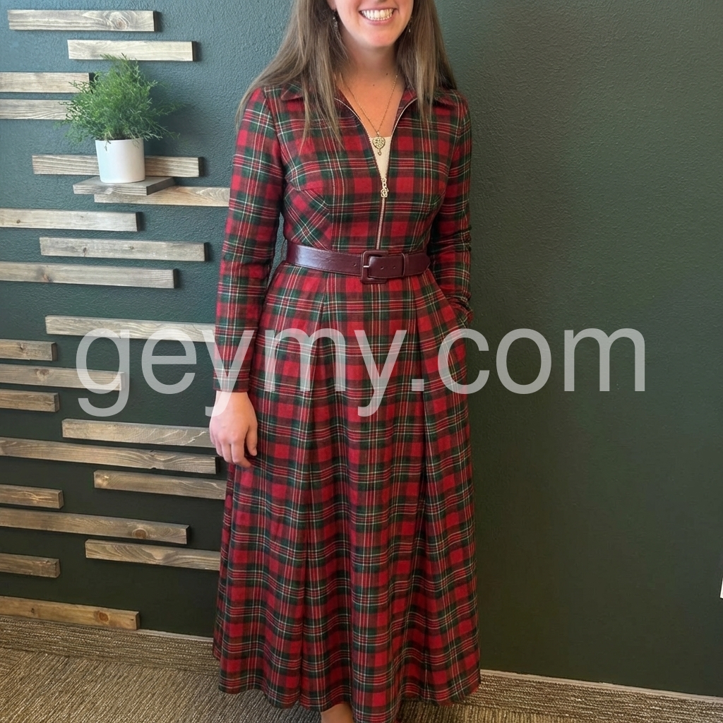 Elevate your wardrobe with this striking red plaid maxi dress, designed for those who appreciate timeless style with contemporary flair. The full-length silhouette offers sophisticated coverage, while the zip front closure provides effortless dressing and versatile styling options. Long sleeves deliver warmth and elegance, making this piece ideal for layering or wearing solo across seasons. The classic plaid pattern adds visual interest and pairs seamlessly with boots, sneakers, or heels depending on the occasion. Perfect for casual outings, professional settings, or weekend gatherings, this dress combines comfort with refined aesthetics for a polished everyday look.