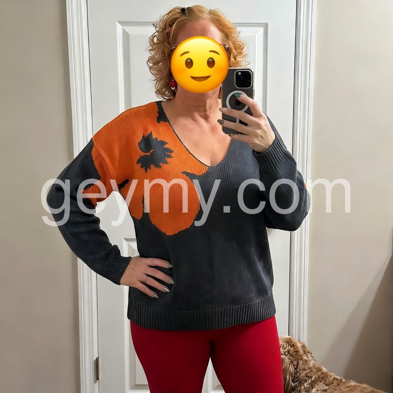 This grey floral print long sleeve sweater is a stylish and versatile addition to any wardrobe. With its beautiful floral design and comfortable long sleeves, it will keep you warm and on-trend. Made with high-quality materials, it offers both style and comfort for any occasion.