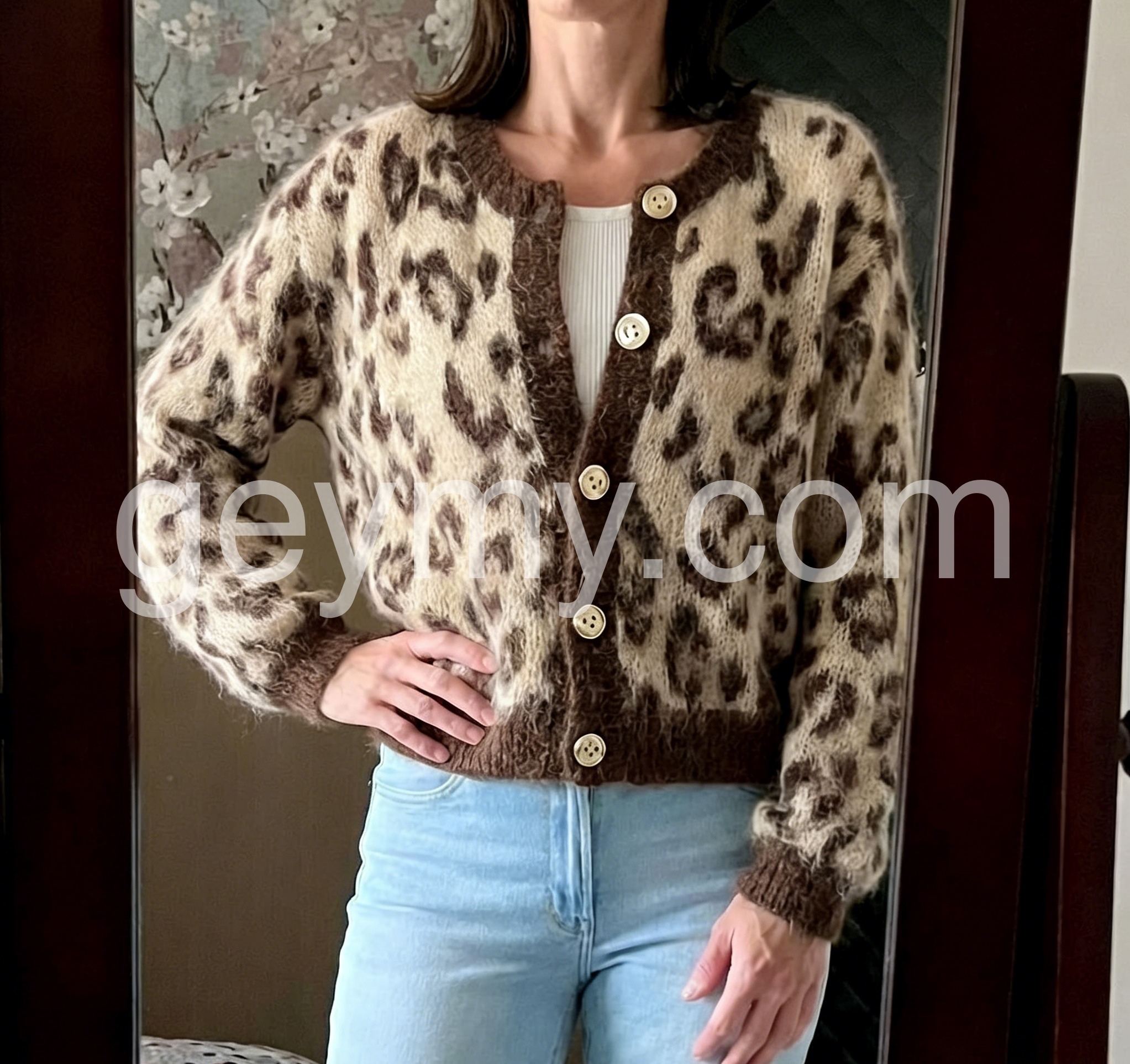 Embrace bold style with the Wild Long Sleeve Leopard Cardigan. Crafted for comfort and flair, this piece features a distinctive leopard print that adds an adventurous edge to any outfit. The long sleeves provide warmth and versatility, making it perfect for layering in cooler weather. Its quality fabric ensures durability while maintaining a soft touch against the skin. Ideal for elevating casual looks or adding a statement to your wardrobe, this cardigan combines fashion-forward design with practical comfort.