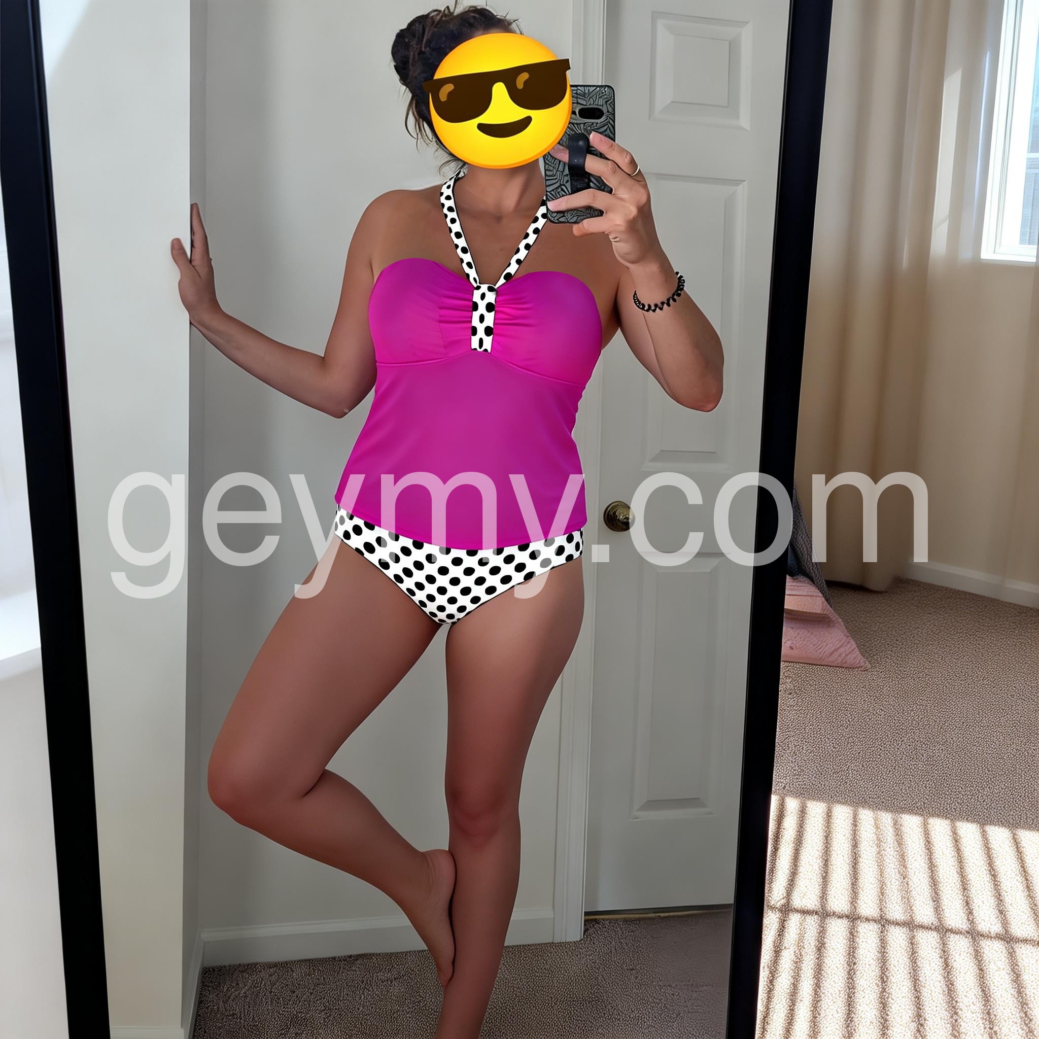Showy Fuchsia Halter Polka Dot Swimwear