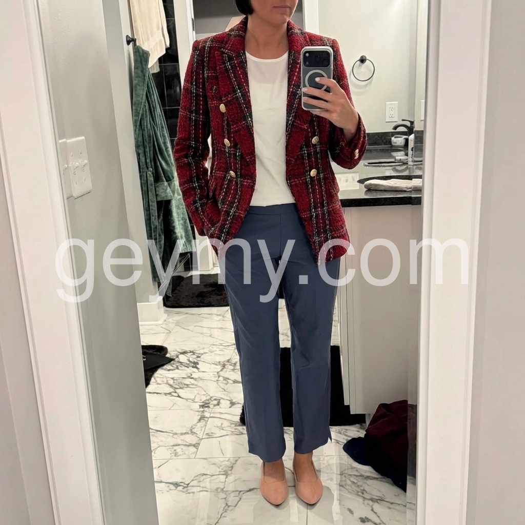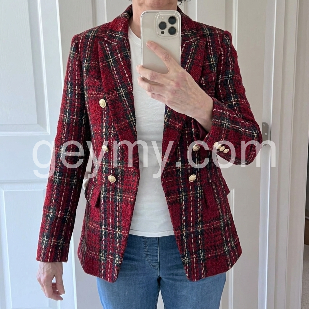 Red Long Sleeve Check Blazer