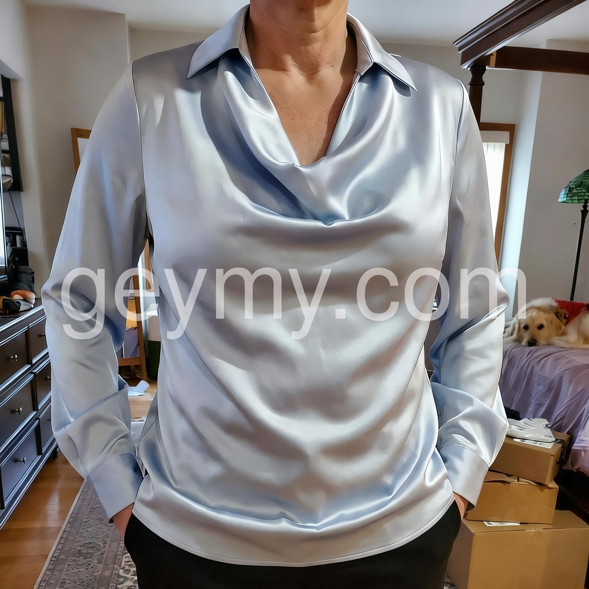 - Neckline: Collared