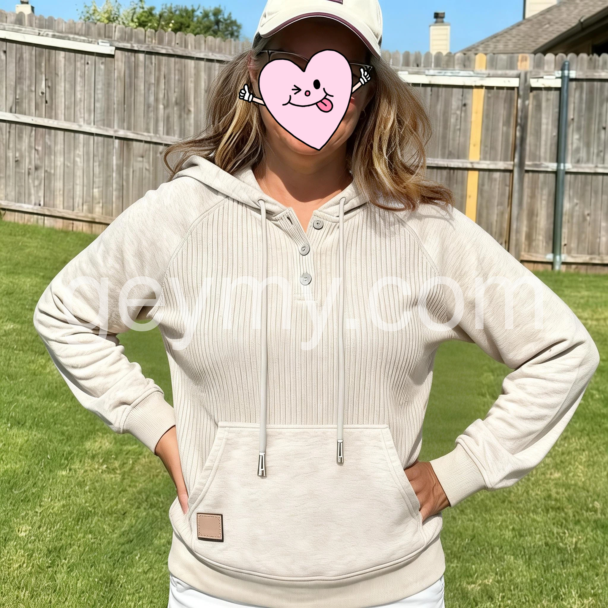 This plain ribbed knit hoodie sweatshirt combines cozy warmth with easy-to-style simplicity. Crafted from soft, breathable fabric, it features a button-front design that adds versatility and a tailored touch. The ribbed knit texture enhances comfort and fit, making it ideal for layering or casual wear. Perfect for those seeking a refined yet relaxed hoodie experience.